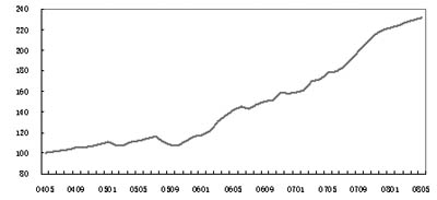 2008年5月,北京中高檔二手商品房成交均價(jià)為13964元/平方米,二手商品房買賣領(lǐng)先指數(shù)為231點(diǎn),環(huán)比4月上漲0.86%,漲幅微有回落。同時(shí),成交量環(huán)比4月有了5.87%的上漲。由此可見,北京中高檔二手商品房市場(chǎng)在5月持續(xù)回暖。