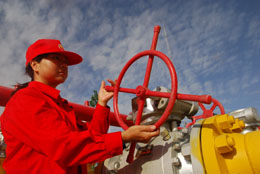 6月28日,澀北氣田格爾木末站的工作人員正在檢查氣泵。當(dāng)日,我國(guó)四大天然氣田之一的青海油田澀北氣田100億立方米天然氣產(chǎn)能建設(shè)重點(diǎn)工程在青海省格爾木市啟動(dòng)。此次工程至2010年將建成每天2740萬(wàn)立方米的天然氣生產(chǎn)能力。