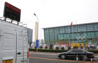 車輛尾氣遙測車開進奧運主場館區(qū)[圖]