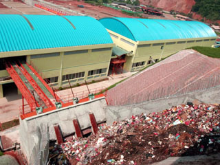 這是梧州市城市生活垃圾處理廠。由中德合作建設的城市有機垃圾處理CDM項目總投資1.6億元,日處理城市生活垃圾600噸。本報記者:張愛林