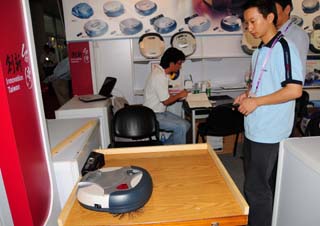 在日前舉行的第104屆中國進出口商品交易會(廣交會)上,一批設(shè)計新穎而又實用的出口商品受到采購商的青睞。圖為一家臺灣參展企業(yè)參展的全自動吸塵器。