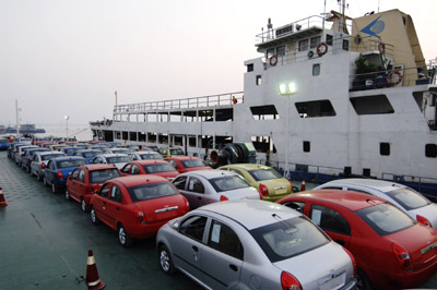 一批出口到委內(nèi)瑞拉的奇瑞汽車在碼頭等候裝船(10月16日攝)。本報(bào)記者:李健