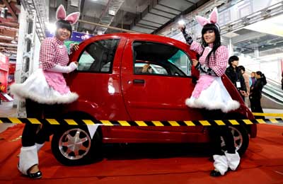 由中國節(jié)能協(xié)會、湖南省經(jīng)濟委員會、長沙市人民政府主辦的“2008中國(長沙)節(jié)能科技產(chǎn)品交易博覽會”日前在長沙紅星國際會展中心舉行。圖為一家企業(yè)展出環(huán)保電動汽車。本報記者:李尕
