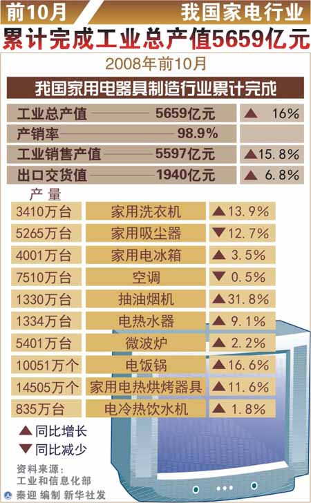 前十月家電業(yè)累計(jì)完成工業(yè)總產(chǎn)值5659億元