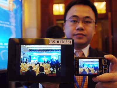 日前,第三屆移動夢網(wǎng)重慶論壇在重慶舉行,論壇以“新起點,新價值”為主題,來自國內(nèi)外頂尖企業(yè)家和技術專家,圍繞新通信、移動互聯(lián)網(wǎng)及新媒體的發(fā)展現(xiàn)狀及未來趨勢,展開深入研究和討論。 據(jù)了解,自2000年中國移動推出“移動夢網(wǎng)創(chuàng)業(yè)計劃”以來,重慶移動已分別在2002年和2004年舉辦兩屆移動夢網(wǎng)重慶論壇。圖為一名移動公司的技術人員正在展示可以通過電信新技術接收手機照片的電子相框。 |
