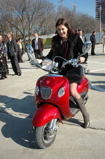 2月6日,在羅馬尼亞首都布加勒斯特世界貿(mào)易中心附近,一名當(dāng)?shù)亟?jīng)銷商正在試駕力奇公司推出的新車。當(dāng)天,羅馬尼亞華資力奇公司舉行09’新品推介會(huì)。力奇公司是當(dāng)?shù)刈畲蟮哪ν熊嚭吞ぐ遘嚱?jīng)銷商,去年銷量超過全國總銷量的三分之二。
