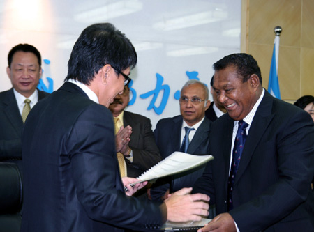 中國民營企業(yè)何佳正元(北京)投資有限公司與印度尼西亞馬魯古省政府日前在北京簽署一項合作協(xié)議備忘錄,雙方將在電站電網(wǎng)建設和資源開發(fā)等方面進行全面合作。根據(jù)備忘錄,何佳正元(北京)投資有限公司將投資10多億元人民幣在印尼馬魯古省進行電站電網(wǎng)等項目建設與資源開發(fā)。圖為簽約現(xiàn)場。