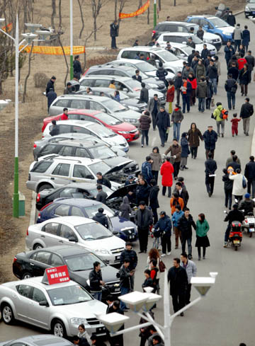 3月15日,市民在沈陽五里河公園參觀選購汽車。隨著汽車進入家庭步伐的加快,交通擁堵、環(huán)境污染等一系列新問題又擺在了城市管理者的面前,拼車新政等措施應運而生。張文魁