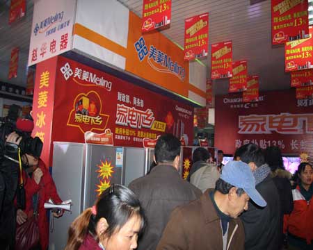 美菱家電下鄉(xiāng)產(chǎn)品銷售火爆。本報記者:葛如江