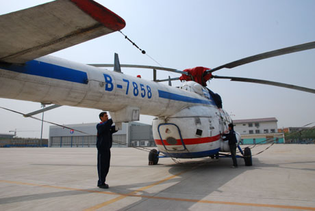近日,天津翔宇航空維修工程有限公司作為中國民航界的第一家直升機(jī)大修公司,在位于天津?yàn)I海國際機(jī)場的新基地順利落成并取得大修證。以前國內(nèi)直升機(jī)主要是送到國外進(jìn)行維修,該基地的建立將大大降低國內(nèi)航空企業(yè)直升機(jī)的維修成本。圖為技術(shù)人員對經(jīng)過維修的直升機(jī)進(jìn)行檢測。