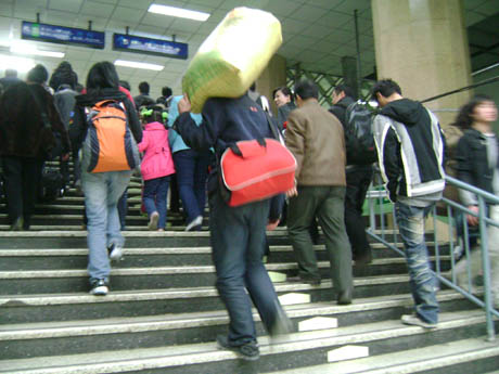 北京地鐵站內(nèi)的乘客。本報記者 文婧