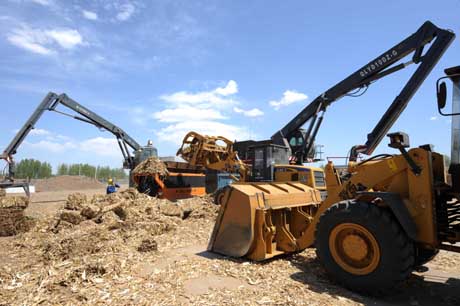 5月3日,位于內(nèi)蒙古赤峰市松山區(qū)安慶工業(yè)園內(nèi)的國能赤峰生物發(fā)電有限公司原料庫工人正在裝填秸稈。 國家能源戰(zhàn)略儲備基地——內(nèi)蒙古自治區(qū)積極探索風(fēng)電、太陽能、生物能源利用新技術(shù),與國內(nèi)大型能源電力企業(yè)聯(lián)手,打造綠色能源基地。2008年初,內(nèi)蒙古率先在資源條件優(yōu)越的赤峰市建成自治區(qū)首家生物發(fā)電機組,利用周邊農(nóng)區(qū)的秸稈原料進行直燃發(fā)電。目前,已投產(chǎn)的一期工程年創(chuàng)7200萬千瓦時的綠色電能,同時可直接增加農(nóng)民收入2000多萬元。整個項目計劃投資5億元,規(guī)劃裝機容量5萬千瓦,每年消耗玉米秸稈32.7萬噸,年發(fā)電量2.75億千瓦時! |