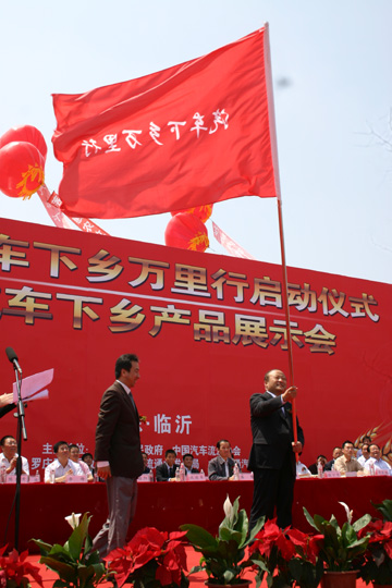 山東臨沂市市長(zhǎng)張少軍接過(guò)了“汽車下鄉(xiāng)萬(wàn)里行”活動(dòng)的旗幟。 |