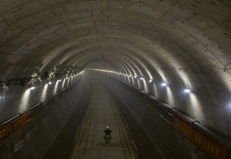 中國鐵建十四局集團承建的國家“863”計劃的科技示范工程——南京長江隧道左線將于5月20日貫通。南京長江隧道工程位于南京長江大橋和長江三橋之間,它南起南京市主城區(qū)的濱江快速路,北至江北收費廣場連接線,設(shè)計為雙向6車道,行車時速80公里,工程總投資約33億元人民幣,其左線隧道長3022米。 新華社記者 邢廣利 攝