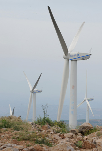 河南省三門峽市依托豫西開闊山地和黃河河谷地理優(yōu)勢(shì)所具有的獨(dú)特風(fēng)能資源,投資建設(shè)的三門峽黃河風(fēng)電場一期工程項(xiàng)目于2008年8月全部建成投產(chǎn)。據(jù)悉,二期工程將于近期開工。這是5月19日拍攝的三門峽黃河風(fēng)電場!