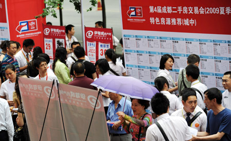 5月29日,眾多市民在看二手房信息。 當(dāng)日,第4屆成都二手房交易會(huì)(2009年夏季)在成都市二手房交易市場(chǎng)拉開帷幕。參展的20家成都品牌中介精選2萬(wàn)余條二手房房源信息,為購(gòu)房者提供購(gòu)房選擇。