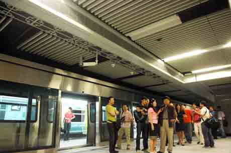 5月31日,軌道交通建設(shè)部門工作人員和媒體記者在北京地鐵4號線平安里站參觀站內(nèi)設(shè)施。 當日,北京地鐵4號線開始車輛全線貫通測試,為9月底實現(xiàn)開通運營即達到最小間隔3分鐘做好準備。地鐵4號線南起公益西橋站,北至安河橋北站,全長約28公里,是繼地鐵5號線后又一條貫穿京城南北的交通大動脈。