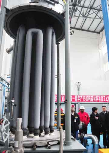 國(guó)內(nèi)最大的多晶硅單條生產(chǎn)線今年初在宜昌建成投產(chǎn)。新華社發(fā)(蔡鈞庭攝) |