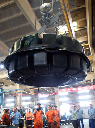 當(dāng)日,一個直徑1.78米、重達(dá)兩噸的特大輻板式實(shí)心花紋輪胎在山東煙臺誕生。這個實(shí)心輪胎由山東煙臺中策橡膠有限公司自主研發(fā)生產(chǎn),其特點(diǎn)是橡膠原料的消耗比傳統(tǒng)實(shí)心輪胎減少40%—50%,同時輪胎壽命大大延長。據(jù)悉,該型號輪胎產(chǎn)品已被美國重型工程和起重設(shè)備制造商卡特皮勒公司獨(dú)家買斷。 |