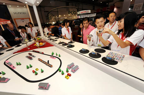 在日前舉行的2009中國(guó)國(guó)際消費(fèi)電子博覽會(huì)(SINOCES)上,觀眾在數(shù)碼產(chǎn)品體驗(yàn)臺(tái)了解新款數(shù)碼相機(jī)。 |