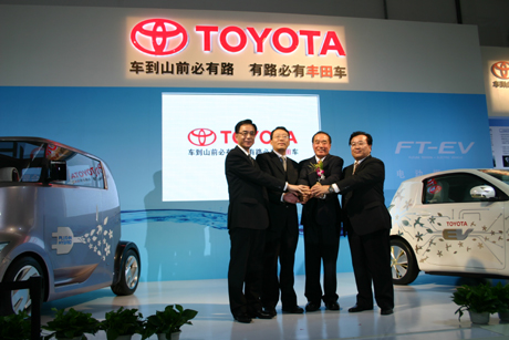 以“環(huán)境、未來”為主題,豐田在主展臺集中展示了3款代表了環(huán)保方面尖端科技的概念車,分別是搭載了鋰離子電池的電動車FT-EV、外插充電式混合動力車Hi-CT以及新感官TOYOTA油電混合動力概念車HYBRID-X。這3款車既代表了豐田公司在環(huán)保方面的領先科技,又為全球解決環(huán)保和能源問題提供了新的參考。