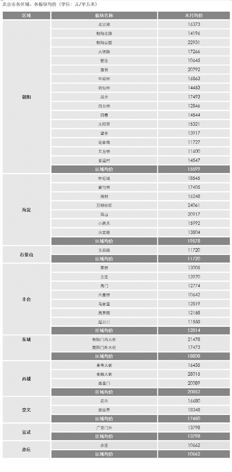 ●北京中高檔二手商品房成交均價(jià)為15566元/平方米,領(lǐng)先指數(shù)為252點(diǎn),環(huán)比上漲4.45%,創(chuàng)2009年的價(jià)格新高。