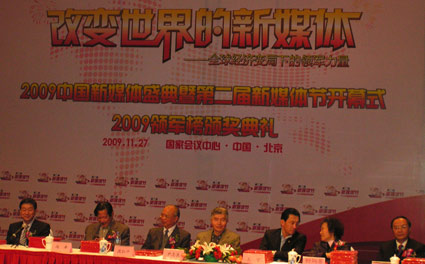 中國(guó)新媒體領(lǐng)軍榜”的評(píng)選活動(dòng),經(jīng)過社會(huì)調(diào)查、組委會(huì)初評(píng)、參評(píng)單位提交資料審核、專家委員會(huì)評(píng)審等環(huán)節(jié),華聲在線、人民網(wǎng)、新華網(wǎng)、央視網(wǎng)、百度、網(wǎng)易、騰訊、新浪、搜狐、鳳凰網(wǎng)等十家國(guó)內(nèi)知名網(wǎng)站獲得了“2009中國(guó)(網(wǎng)絡(luò))新媒體十大領(lǐng)軍品牌”殊榮,華聲在線董事長(zhǎng)薛伯清、新浪CEO曹國(guó)偉、網(wǎng)易CEO丁磊、人民網(wǎng)總裁何加正、華視傳媒董事局主席兼首席執(zhí)行官李利民、漢王科技董事長(zhǎng)劉迎建、中文在線董事長(zhǎng)兼總裁童之磊、央視網(wǎng)總裁汪文斌、優(yōu)視動(dòng)景CEO余永福、搜狐董事局主席兼CEO張朝陽等業(yè)界精英獲評(píng)“2009中國(guó)新媒體十大領(lǐng)軍人物”。