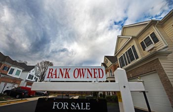 在美國(guó)弗吉尼亞州森特維爾市,一棟待售房屋標(biāo)出“銀行所有”的橫幅,等待買主的光臨。新華社/法新