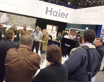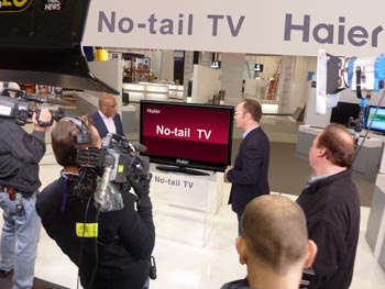 在美國CES展上,海爾“無尾電視”吸引了眾多參觀者駐足獵奇。 |