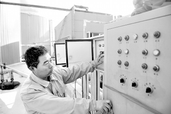 2009年12月16日,北京大興區(qū)長子營鎮(zhèn)留民營村沼氣站的工作人員在操作控制柜。當(dāng)天,北京大興區(qū)長子營鎮(zhèn)留民營沼氣站七村沼氣聯(lián)供工程正式開通。該工程是北京最大的農(nóng)村沼氣集中供氣工程,年處理畜禽糞便達(dá)12萬噸,年產(chǎn)沼氣92萬立方米,為當(dāng)?shù)仄叽?650戶、5900多名村民提供清潔、安全和廉價的管道燃?xì)!⌒氯A社發(fā) |