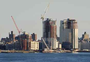 美國(guó)紐約東河岸邊正在建設(shè)的樓盤。新華社記者 申宏