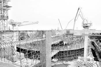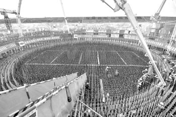 2010年4月25日,海南昌江核電工程正式開(kāi)工第一灌混凝土正在澆筑。海南昌江核電工程位于海南省昌江縣。該工程采用具有我國(guó)自主知識(shí)產(chǎn)權(quán)的CNP600壓水堆核電機(jī)組技術(shù),建設(shè)兩臺(tái)65萬(wàn)千瓦核電機(jī)組,總投資近190億元,1號(hào)機(jī)組計(jì)劃于2014年底并網(wǎng)發(fā)電。新華社記者