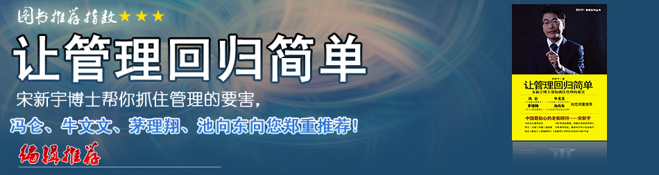 在許多專家、學(xué)者、培訓(xùn)師,把管理講得高深、玄妙、繁復(fù)的時(shí)候,宋博士“讓管理回歸簡(jiǎn)單”,告訴我們企業(yè)管理至簡(jiǎn)、至明、至易、至中的道理和方法,實(shí)在是大家風(fēng)范,難能可貴。 |