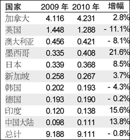根據(jù)美國商務部近日公布的數(shù)據(jù),2010年上半年,美國圖書出口額下滑了0.8%,達到9.111億美元;圖書進口總額上漲了7%,達到8.427億美元。其中,從中國大陸進口的圖書總額上漲了16.4%,逾3.43億美元,使中國仍位居美國圖書進口國家的首位。