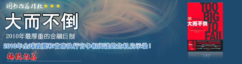 2010年2月15日大年初二,正在與家人團(tuán)聚的北京湛廬文化公司“財(cái)富匯”主編董寰的手機(jī)滴滴地響起。董寰隨手抄起手機(jī),一則短信息映入眼簾。“最近兩天我與金融界朋友聚會,大家都在談?wù)撚⑽陌妗洞蠖坏埂。該書不僅在美國暢銷,而且一個(gè)朋友說,作者在一次公開演講很自豪地宣布中文版即將出版。順祝新春快樂!巴曙松”這則短信讓董寰興奮不已,不光是發(fā)信者是國務(wù)院發(fā)展研究中心金融研究所副所長巴曙松,更為重要的是,短信為她傳遞了一個(gè)信息———《大而不倒》將會是一本暢銷書。 …[詳細(xì)] |