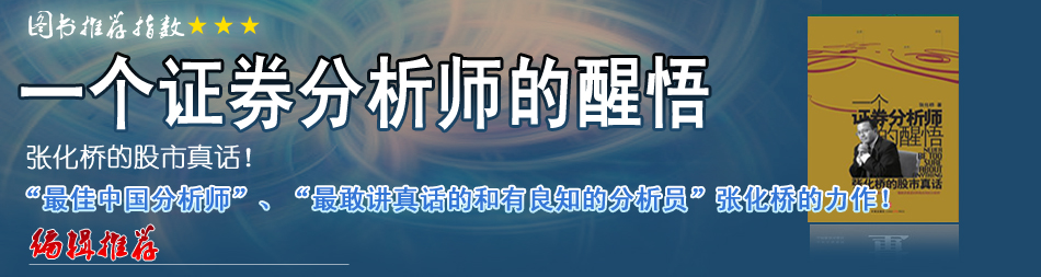 在時下官話、套話、廢話和謊話滿天飛的一片浮躁聲中,張化橋“假話全不說,真話盡量說”的為人原則不能不說是彌足珍貴。他的《一個證券分析師的醒悟———張化橋的股市真話》因此也凸現(xiàn)出了別樣的價值…[詳細] |