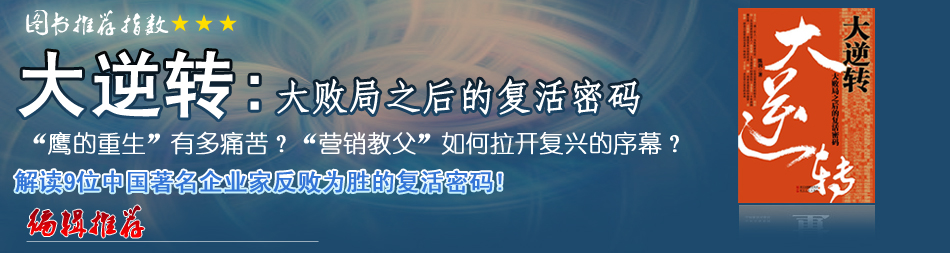 對(duì)于企業(yè)家而言,失敗只是華彩篇章中一個(gè)微不足道的逗號(hào)而已。財(cái)經(jīng)作家陳潤(rùn)在他的新書(shū)《大逆轉(zhuǎn)》中,就寫(xiě)了這樣一群不甘心失敗、再戰(zhàn)商業(yè)江湖,又重新獲得人生輝煌的企業(yè)家群體。從書(shū)中對(duì)這些案例的分析總結(jié),我們可以看見(jiàn)那些歷經(jīng)慘敗卻又從地上爬起來(lái)的企業(yè)家們所普遍具有的特質(zhì),那就是:狂野的夢(mèng)想、粗壯的神經(jīng)、冷靜的反思以及縝密的計(jì)劃…[詳細(xì)] |