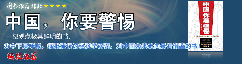 了解中國社會、理解社會現(xiàn)實(shí)、看清周邊環(huán)境、看清未來發(fā)展應(yīng)該看看這本書。不是完全贊同其中的某些觀點(diǎn),正如前面朋友有提到的過于主觀,但是畢竟代表了一部分人的看法,可供參考。 |