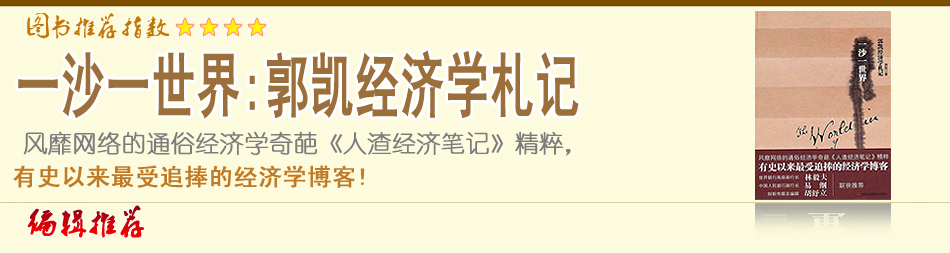 這是筆者第三遍看《一沙一世界:郭凱經(jīng)濟(jì)學(xué)札記》了,這本書(shū)算是郭凱博文的合集,他的博客寫(xiě)了五年,我看了五年。我對(duì)經(jīng)濟(jì)學(xué)的理解也是隨著他的博客一天天成長(zhǎng)的。他關(guān)注的問(wèn)題總是很宏觀,大到世界,卻從小事的觀察入手,像是沙粒的縫隙中有無(wú)窮的奧秘,大概也是“一沙一世界”的用意吧…[詳細(xì)]