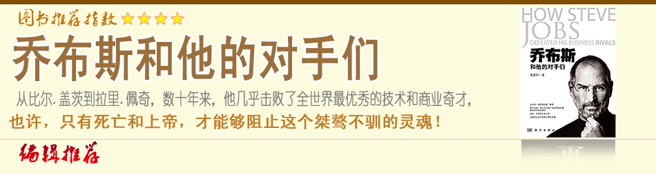 《喬布斯和他的對(duì)手們》一書(shū)記錄了喬布斯的商業(yè)生涯,分24章,從早期與合伙人創(chuàng)立蘋(píng)果一直到后期的iPad系列,講了他在其中遇到的困難,并記錄喬本人是如何度過(guò)這些難關(guān)的…[詳細(xì)]