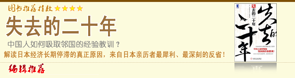 池田信夫的《失去的二十年》,全書(shū)共分九章,從日本的現(xiàn)狀、歷史和經(jīng)濟(jì)學(xué)的角度出發(fā),深刻分析甚至顛覆了世界對(duì)日本經(jīng)濟(jì)很多傳統(tǒng)的看法。閱讀《失去的二十年》,不能不對(duì)池田信夫在每章前面引用的名言好好思考,這也是反思中國(guó)經(jīng)濟(jì)的必要提醒…[詳細(xì)]