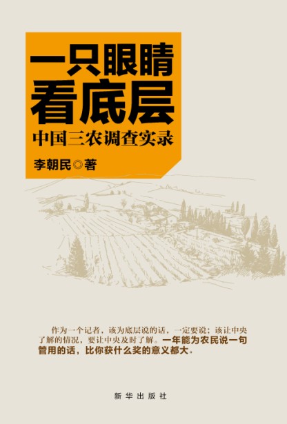 《一只眼睛看底層——中國(guó)三農(nóng)調(diào)查實(shí)錄》一書,近日將由新華出版社出版。該書作者為《農(nóng)民日?qǐng)?bào)》記者李朝民。作者通過“聚焦農(nóng)業(yè)”、“田野驕子”、“底層脈動(dòng)”、“微觀樣本”、“瞭望三農(nóng)”等5部分,對(duì)近年來我國(guó)“三農(nóng)”問題進(jìn)行了多側(cè)面的觀察與解讀。