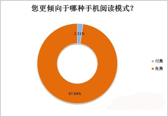 從上面圖表中可以看到,對于手機閱讀來說,用戶并沒有形成付費的習慣,97.69%的用戶還是傾向于免費閱讀,因而如何改變用戶的付費習慣,讓用戶能主動的掏錢,是目前閱讀軟件的一個挑戰(zhàn)。