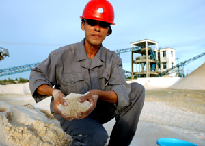 攝) | 在海南島東方市有一個(gè)不為人熟知的八所石英砂礦,舉世矚目的2008年北京奧運(yùn)會(huì),卻將這個(gè)小小的砂礦和相距數(shù)千公里的首都北京緊緊地連在了一起。 憑借其產(chǎn)品的出色品質(zhì),八所石英砂礦在激烈的奧運(yùn)“淘沙”之戰(zhàn)中脫穎而出,得到北京奧組委和國際排聯(lián)的認(rèn)可,并將承擔(dān)北京奧運(yùn)會(huì)1.7萬噸沙灘排球場地用沙的生產(chǎn)任務(wù)。