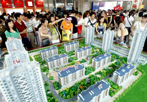 在近日開幕的“2007沈陽夏季房地產(chǎn)展示交易會”上,購房者在沙盤前表情各異,房價(jià)仍是他們的最關(guān)注點(diǎn)。新華社發(fā)(張文魁