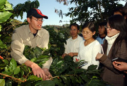 揚帆工程走進云南,旨在幫助全國大學畢業(yè)生成功就業(yè)?Х确N植專家鄔特(左一)在為云南農(nóng)業(yè)大學應(yīng)屆畢業(yè)生介紹小粒種咖啡種植技術(shù)。新華社記者:王呈選
