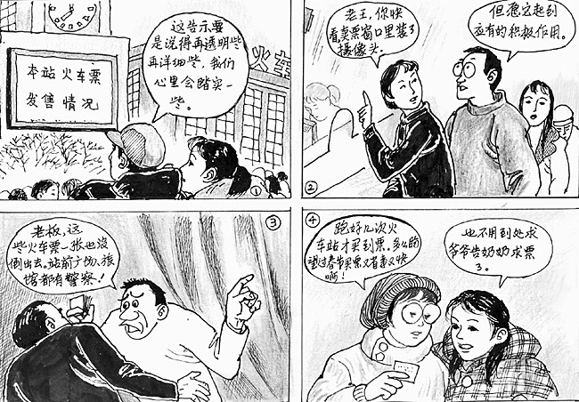 但只要肯開動腦筋,相信解決“一票難求”辦法總比困難多。比如鐵路部門的售票環(huán)節(jié)應該盡可能透明公開,以公眾看得見的方式進行操作;同時調(diào)動各界力量強化監(jiān)督,從源頭遏制倒票行為。那么,眾人乘火車回家“歡歡喜喜過個年”該不會像現(xiàn)在這樣難。