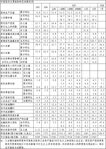 中國(guó)經(jīng)濟(jì)主要指標(biāo)的變動(dòng)情況(%)