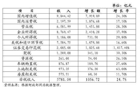 財政收入占GDP的比率是各國都十分重視的指標,它既能反映政府的規(guī)模、集中程度和財政能力,又能反映國家宏觀稅負水平。這一指標過大,財政收入的超額負擔較重,經濟發(fā)展缺乏動力;這一指標過小,政府宏觀調控的能力不足,經濟發(fā)展缺乏保障。因此,財政收入相對GDP來說,應該保持合理增長。 從財政收入自身來看,改革開放以來,我國財政收入總量連年增長,尤其是自2003年突破2萬億關口之后,開始大幅度增長。2004-2006年,財政收入分別比上年增長4681.22