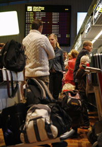 10月19日,在芬蘭的赫爾辛基-萬(wàn)塔機(jī)場(chǎng),乘客等候更換班機(jī)。芬蘭航空公司空乘人員當(dāng)?shù)貢r(shí)間19日清晨4時(shí)起舉行罷工,造成芬航飛往亞洲和美國(guó)的遠(yuǎn)程航班全部停飛,客運(yùn)幾乎處于癱瘓狀態(tài)。